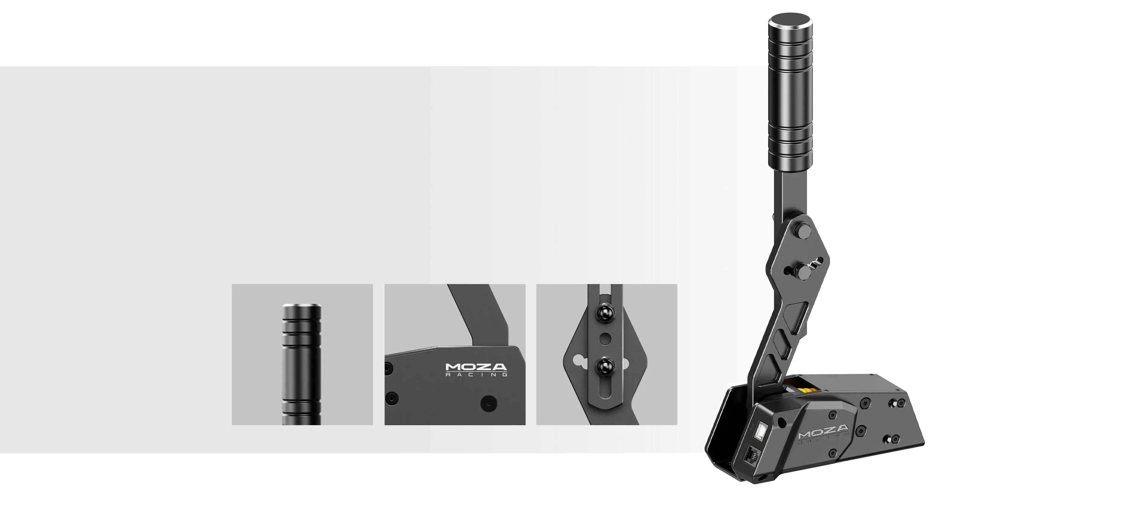 Ein horizontal oder vertikal montierter Hebel simuliert sowohl Straßen- als auch Rennwagen, die Winkel sind je nach persönlichem Bedarf einstellbar.