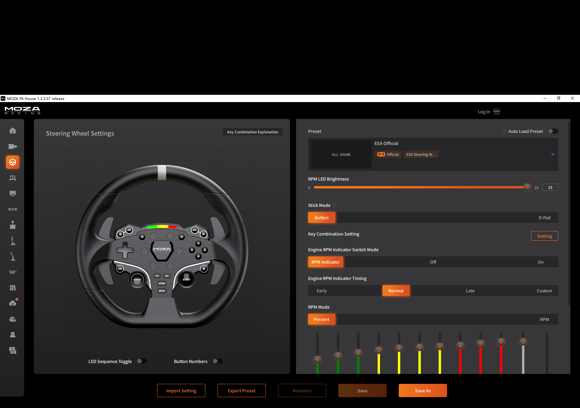 - Konfigurierbare LEDs (MOZA Pit House): Unterstützt
