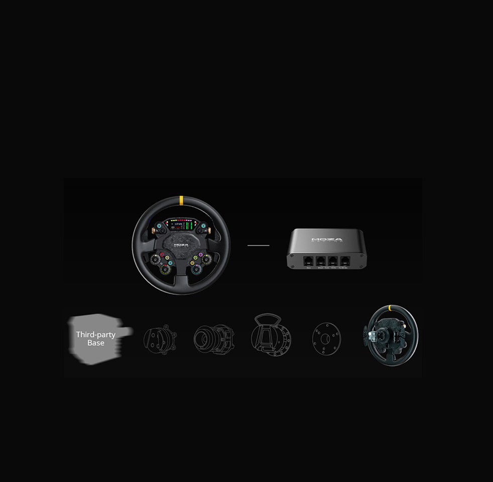 Compatibility: It is compatible with all MOZA wheelbases currently on sale and also works with 3rd party wheelbases via the MOZA hub kit