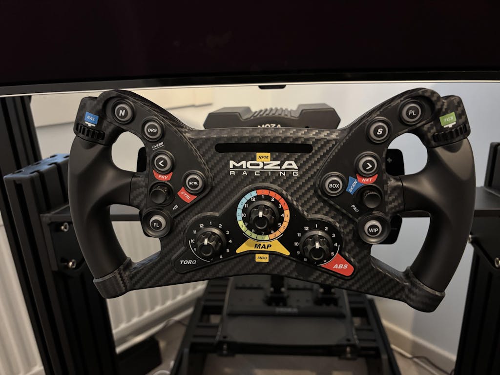 Introducing the MOZA KS Sim Racing Steering Wheel, a brand-new offering designed specifically for GT enthusiasts. This 300mm butterfly-style GT wheel brings the thrill of the track to your fingertips. Crafted with carbon fiber-reinforced composites and TPE rubber grips, it combines durability and comfort for a superior racing experience. The programmable short-travel RGB buttons enable personalized controls and precise input accuracy. With hall sensor magnetic paddles featuring dual clutch functionality, gear shifts are seamless and precise. Embrace an open ecosystem with compatibility across all MOZA non-wireless bases and 3rd party wheelbases via our MOZA Universal Hub Kit PC adapter. Enjoy the efficiency of the Real Racing QR system and take full control with the MOZA Pit House Control Suite.