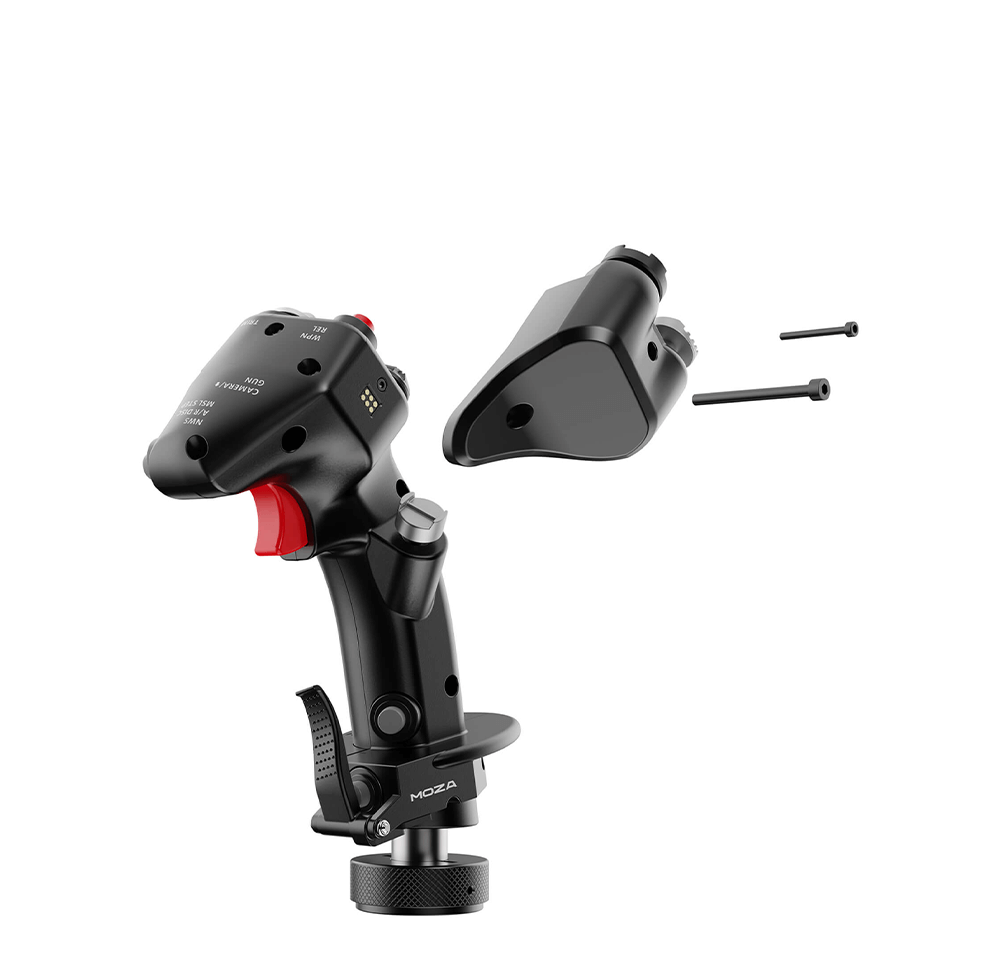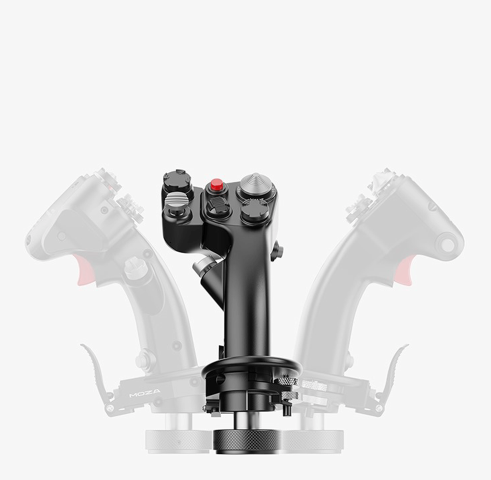 The MOZA MH16 Flightstick, crafted from aviation-grade aluminum alloy with automotive-grade paint, offers exceptional durability and a classic fighter aircraft design. It features detachable modular components with pogo pin connections for easy installation and stable operation, providing additional switches without messy wiring. With 27 input signals and an 8-way ALPS thumbstick, the MH16 allows extensive customization through the MOZA Cockpit Control Software. Effortless plug-and-play compatibility ensures it fits most bases seamlessly, delivering a realistic and reliable flight experience.