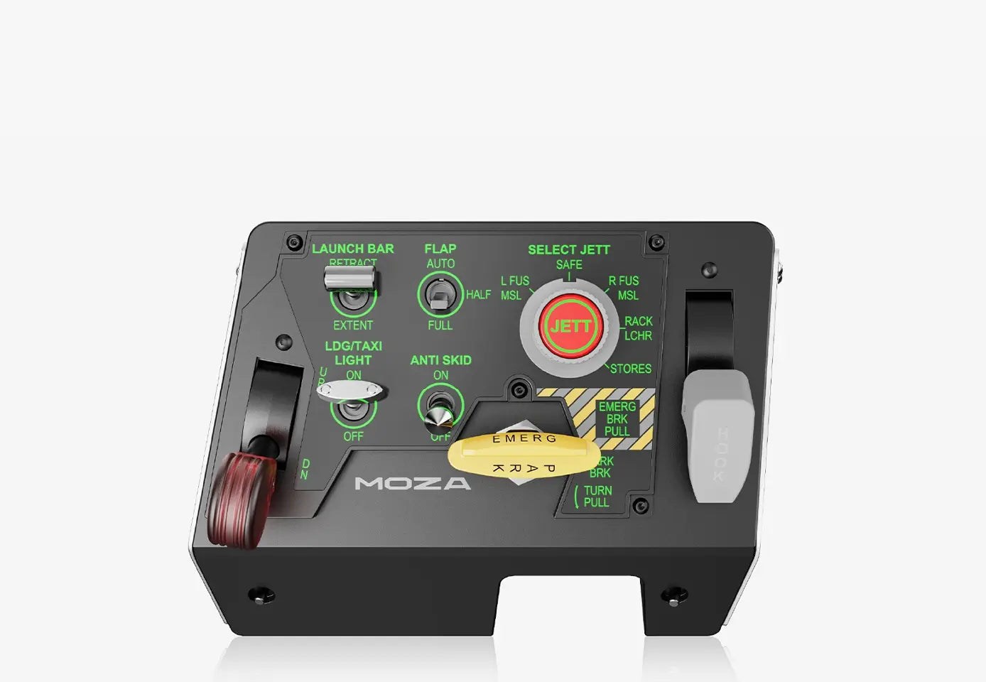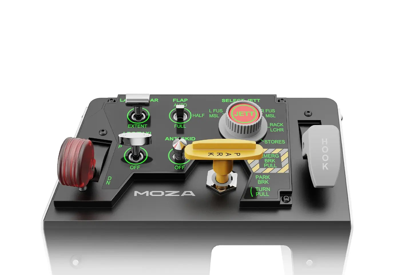 The MOZA MTLP Panel is a high-fidelity multi-function landing panel, designed for precision control and immersive flight simulation. Modeled after the F/A-18 landing panel, it features an intuitive 25-switch signal layout for seamless aircraft operation. The authentic parking brake lever replicates real fighter jet mechanics, while high-precision Hall sensors ensure smooth, long-lasting performance. With programmable panel lights, telemetry-driven indicators, and modular compatibility with the MOZA MTP Throttle Panel, the MTLP delivers unmatched realism, durability, and customizability for professional-grade flight simulation.