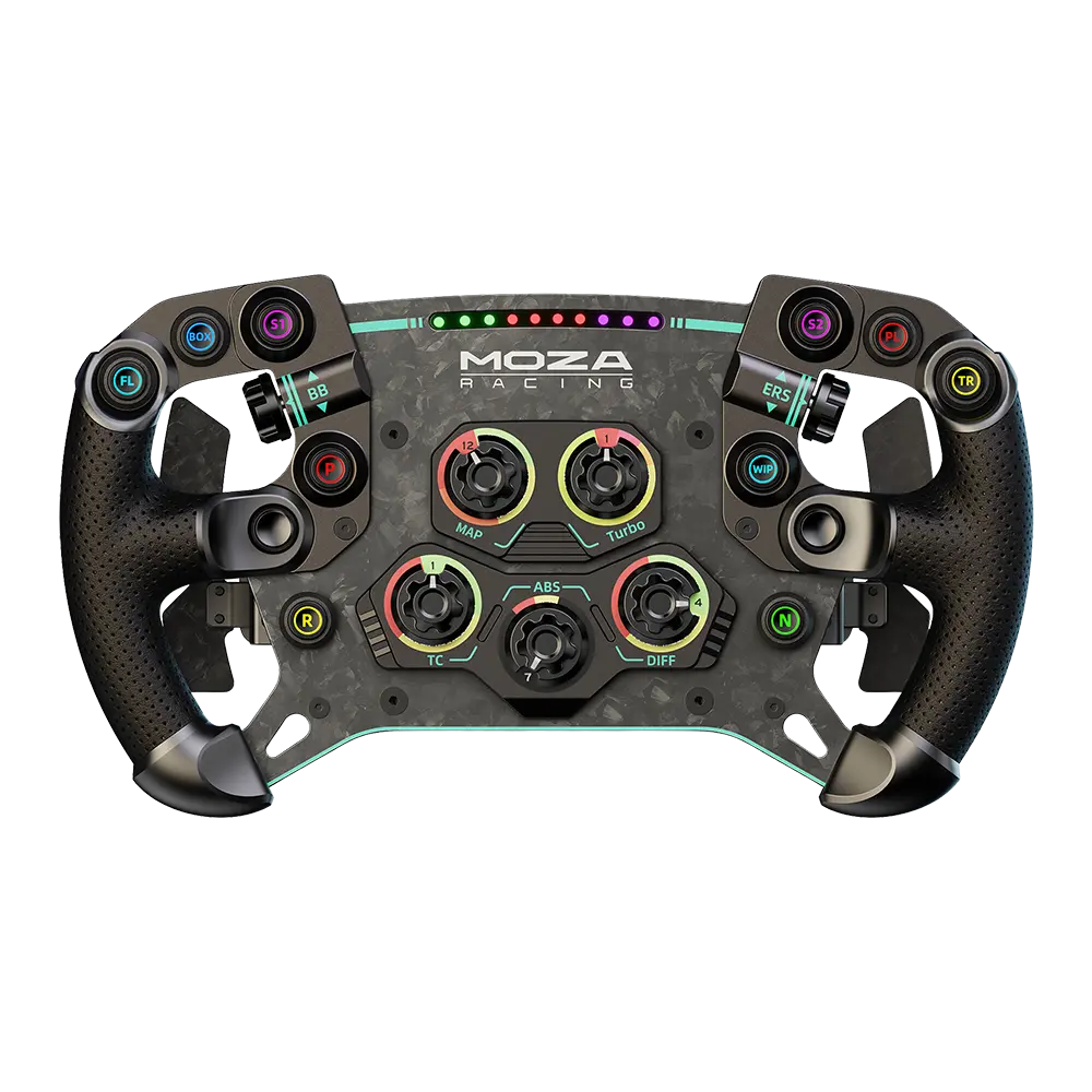 Ignite your sim racing passion with the MOZA R12 and GS V2P GT Wheel Bundle. The R12 sim racing wheelbase delivers a dynamic racing experience with 12 N·m of torque, precise force feedback, and a lightweight design. Crafted from aviation-grade aluminum, it ensures durability and sleek aesthetics. Paired with the MOZA GS V2P GT Wheel, featuring Alcantara or Microfiber Leather construction, a forged carbon fiber case, and programmable mechanical buttons, this bundle guarantees luxury, comfort, and flawless motion capture. Seamlessly transition with the customized quick-release, stay in control with the RGB shift indicator and elevate your racing experience beyond limits.