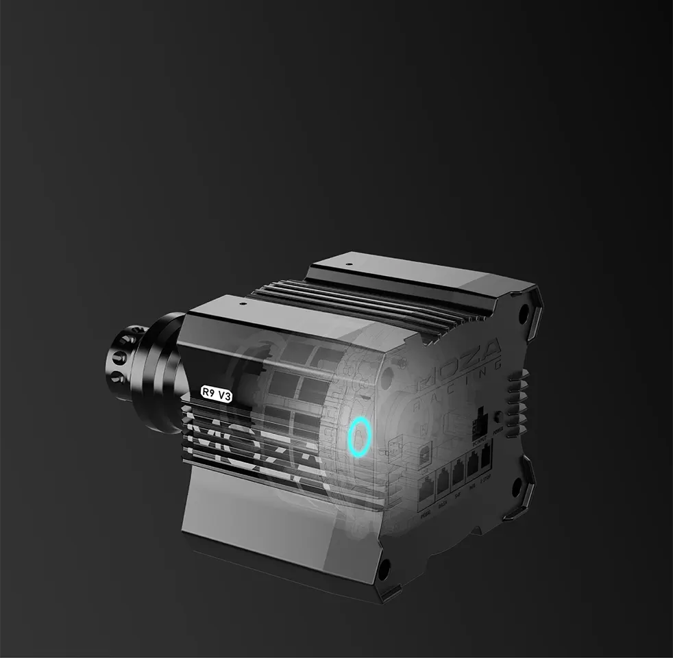 The MOZA R9 V3 is the direct-drive wheelbase for racers who take their performance seriously. Delivering 9 Nm of torque from a high-performance servo motor with a 21-bit magnetic encoder, it offers ultra-smooth, highly detailed force feedback. Crafted from aviation-grade aluminum, the R9 V3 combines lightweight design with maximum durability. Featuring intelligent temperature control, an industrial-grade conductive slip ring, and cloud-based mobile app control, it’s easy to tune and operate. Experience complete precision and seamless integration with the MOZA Pit House Control Center, making your setup ready for any sim racing challenge.