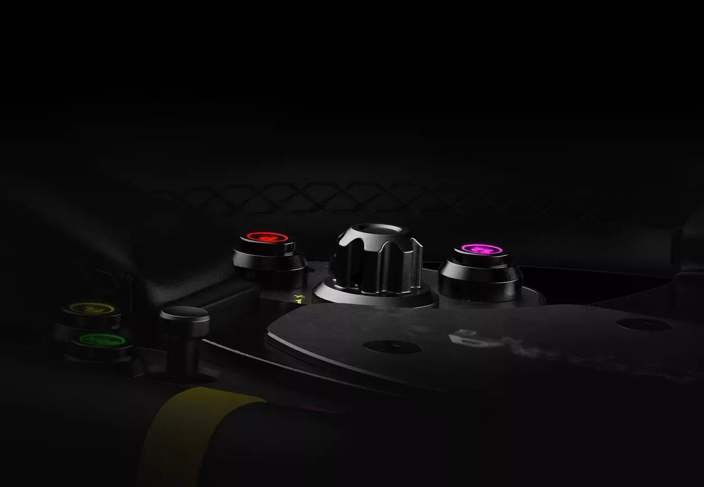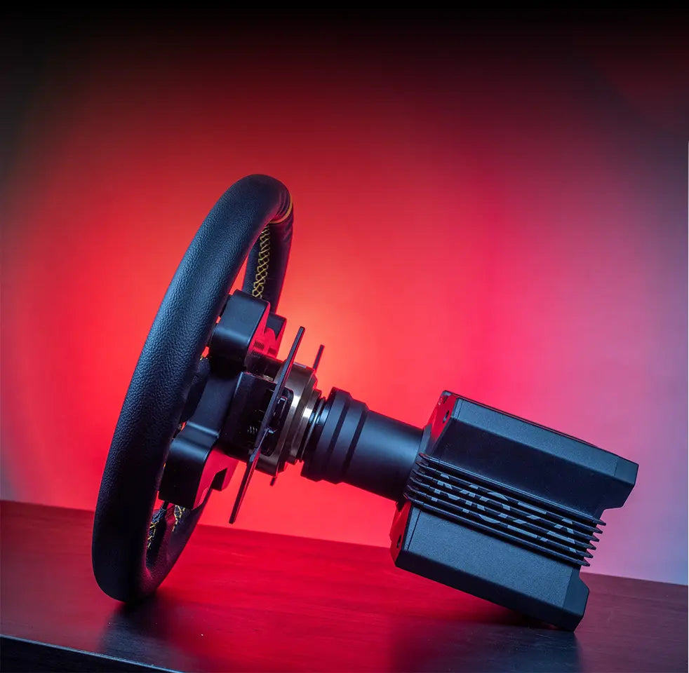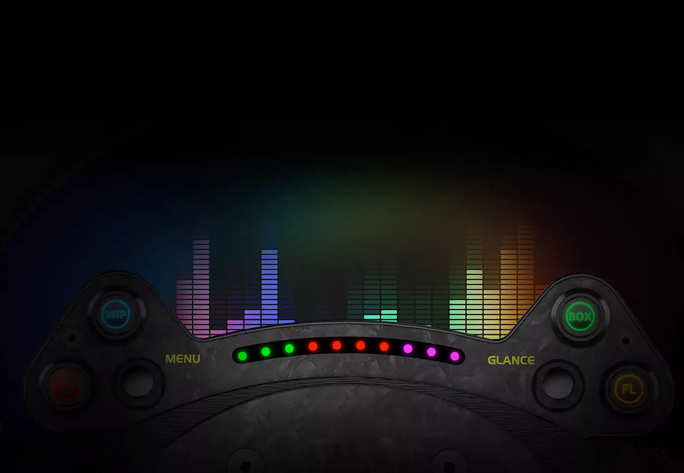 Upgrade your sim racing setup with the RS sim racing steering wheel. This GT wheel offers compatibility with all MOZA wheelbases, seamlessly integrating for an optimized racing experience. Constructed using a combination of forged carbon fiber and aluminum, it ensures both resilience and elegance. Enjoy the 13-inch standard racing rim with an ergonomic design for utmost comfort during exhilarating races. Adorned with a genuine leather grip, it provides a stylish touch. Effortlessly install and remove it with the built-in quick-release mechanism. The LED RGB Rev Light heightens your racing immersion, while the carbon fiber magnetic shifters guarantee precise gear changes.