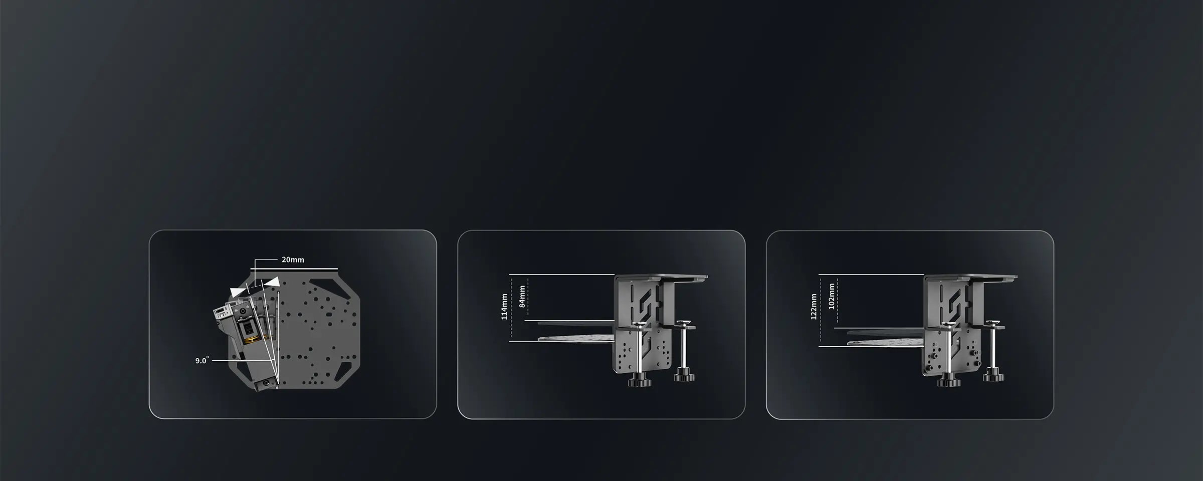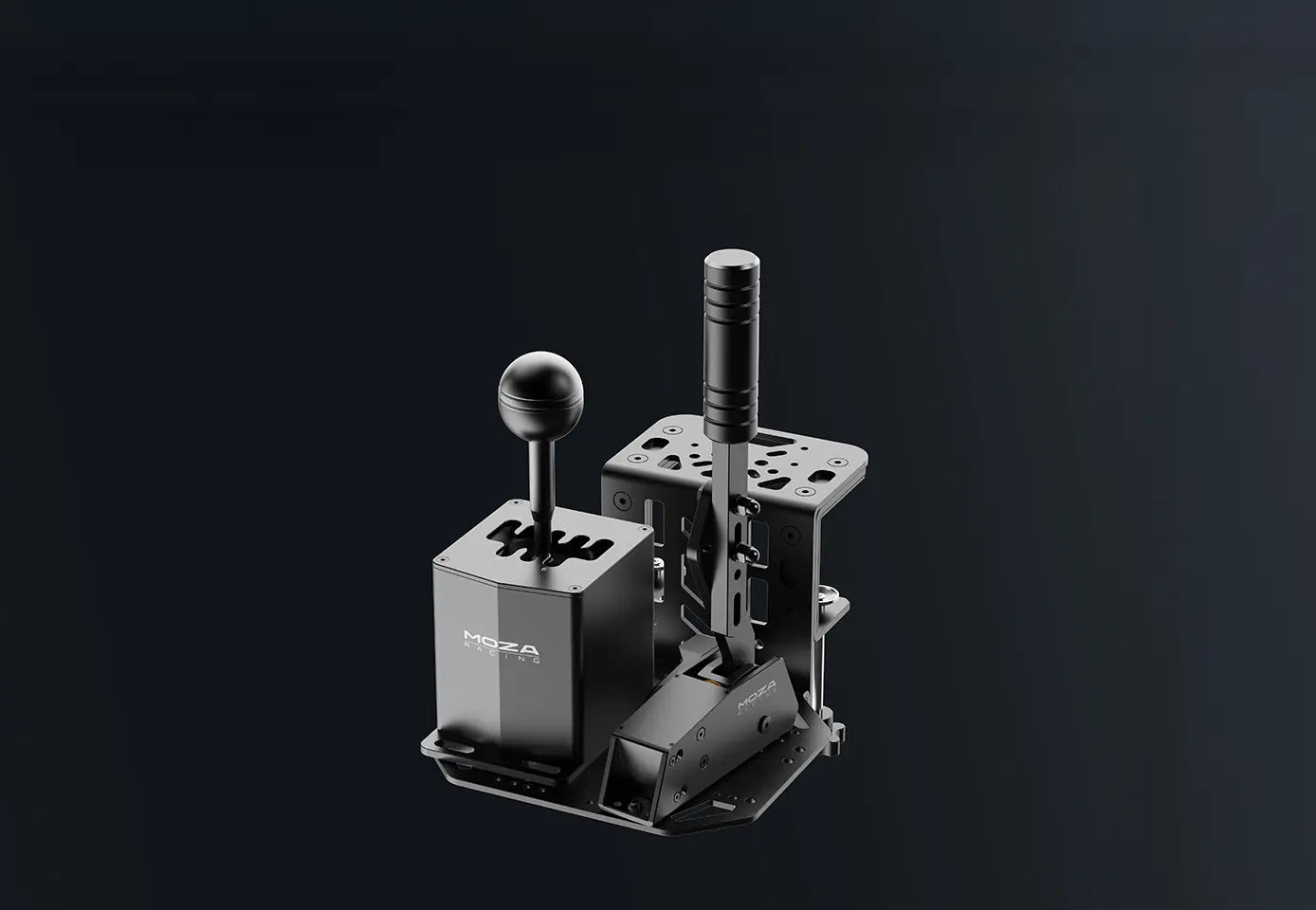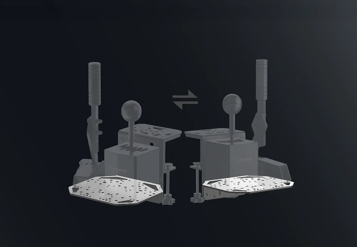 Mount both your shifter and handbrake with a single, ambidextrous bracket. Featuring adjustable height and handbrake angle, multiple mounting options—including tabletop, profile rigs, and DIY setups—and broad compatibility with MOZA and select third-party gear, all in a durable steel design.